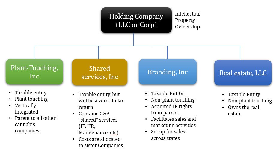 Right from the start Cannabis owners and executives need to think about the right business structure. Keeping business lines that are non-plant touching as separate companies will help limit the 280E burden, setting up your books to maximize COGS by employing a 471(c) strategy is a must.